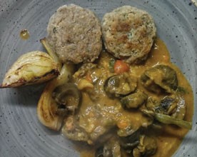Rosticciata di carne e patate, con un ovetto all' occhio di bue